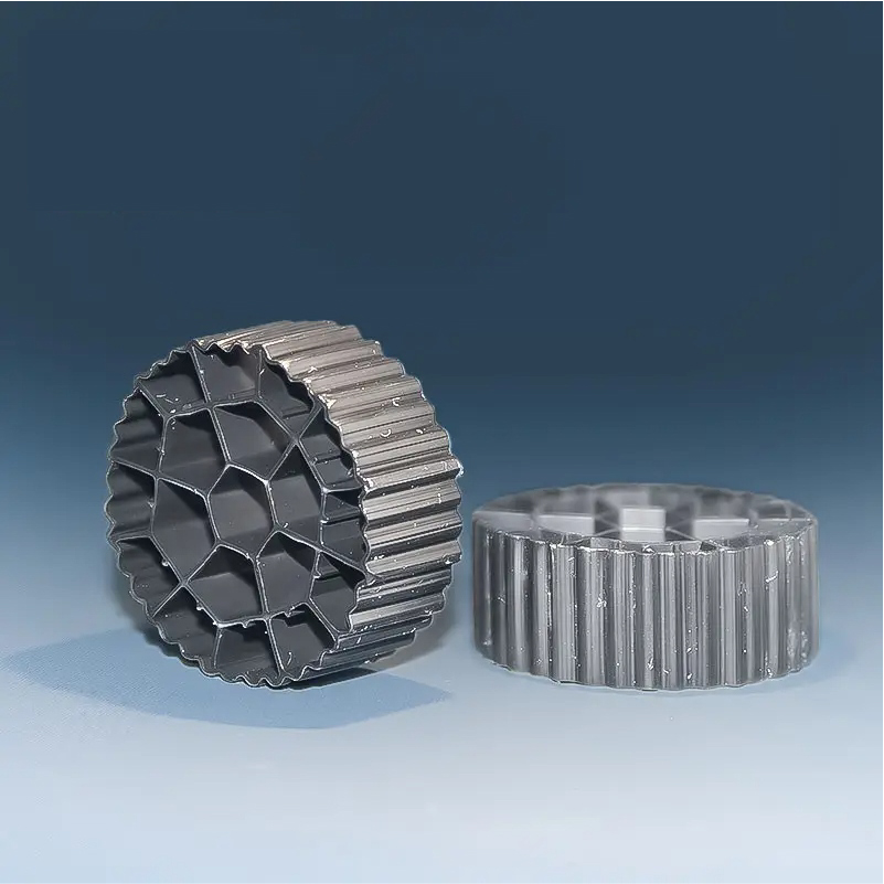 DC19-2 MBBR, được thiết kế chuyên biệt cho quá trình xử lý nước thải sinh học trong môi trường kỵ khí (anaerobic). Sản phẩm được chế tạo từ nhựa HDPE (High-Density Polyethylene) nguyên sinh, theo công nghệ đúc xoay (rotational molding), có hình trụ với 19 lỗ xuyên tâm chính xác và các đường gân dọc nổi (vertical striations) bao quanh toàn bộ bề mặt ngoài. Các yếu tố thiết kế này phối hợp hài hòa, mang lại hiệu quả vượt trội trong vận hành sinh học kỵ khí: