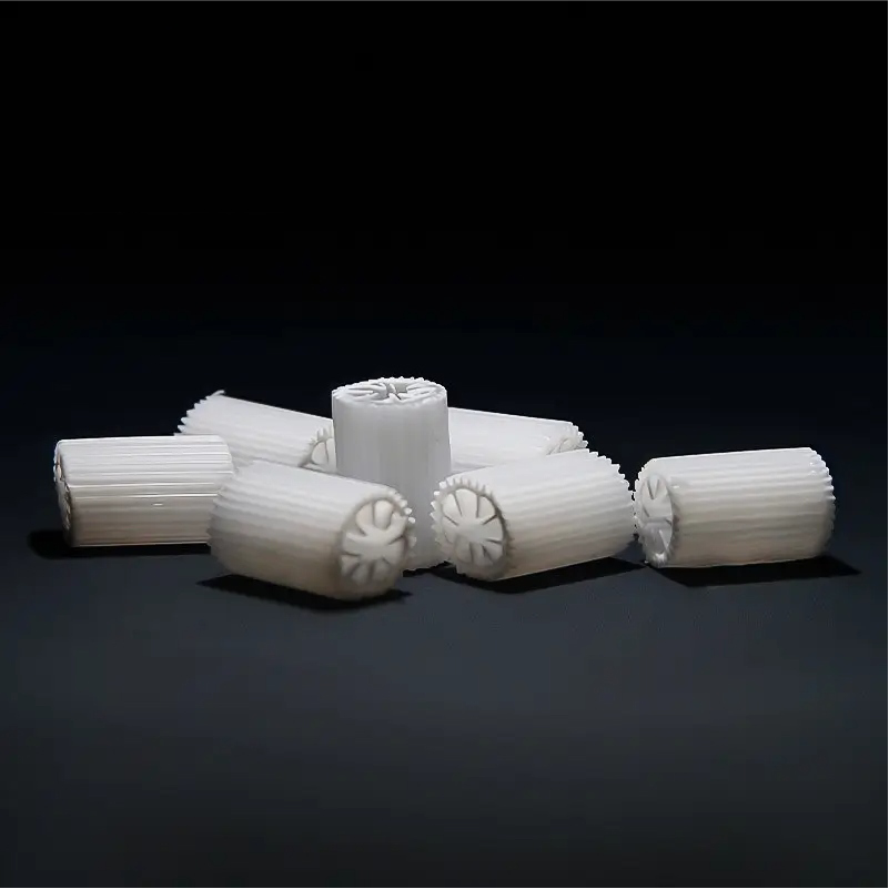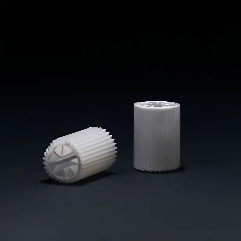 Giá thể MBBR thương hiệu Decycle, Model: DC HIPS 08-1 Có 8 lỗ và có gân sọc dọc là loại giá thể vi sinh mật độ cao, kích thước siêu nhỏ, được thiết kế chuyên biệt cho các bể phản ứng sinh học nhỏ gọn và các hệ thống xử lý nước thải hiệu suất cao. Với cấu trúc hình trụ Φ5×10 mm được gia công chính xác, gồm 8 lỗ xuyên tâm và gân nổi sọc dọc dọc theo thân, loại giá thể này tối đa hóa diện tích bề mặt bảo vệ (>600 m²/m³) đồng thời cải thiện khả năng khuấy trộn và chuyển động thủy lực trong bể.